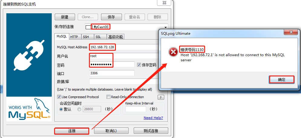 安装配置完成后使用管理工具去连接我们的远端Mysql可能会遇到如下问题: