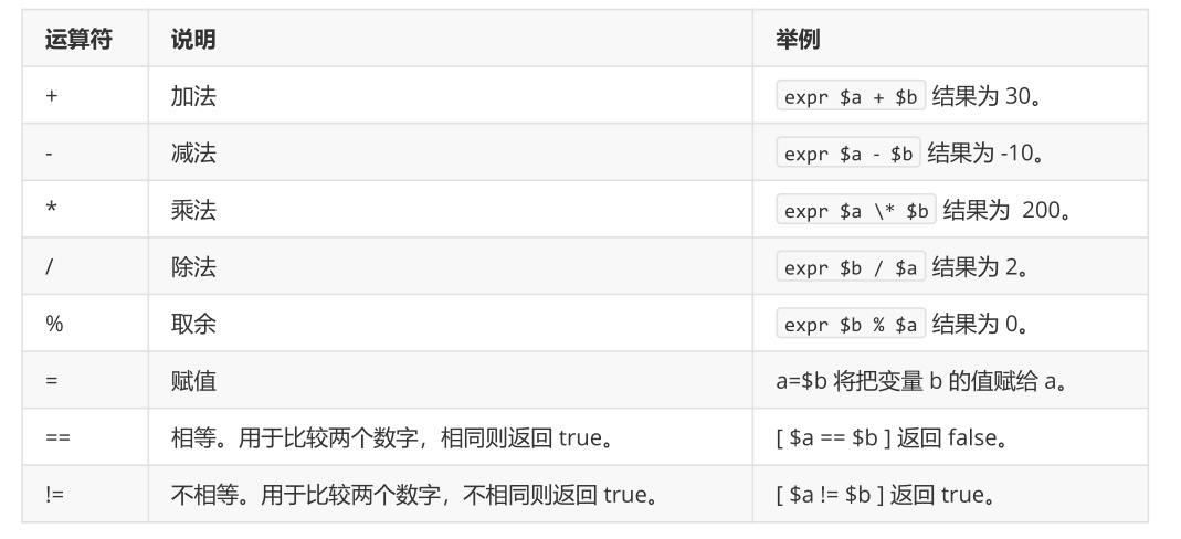 - 在bash中,变量默认类型都是字符串类型,无法直接进行数值运算。