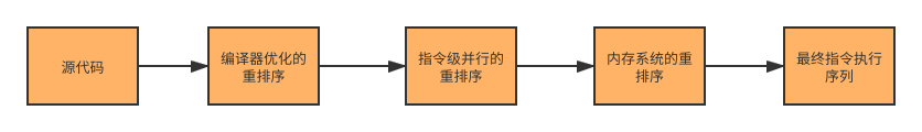 - 指令级并行的重排序。现代处理器采用了指令级并行技术(Instruction-Level Parallelism, ILP)来将多条指令重叠执行。如果不存在数据依赖性,处理器可以改变语句对应机器指令的执行顺序。