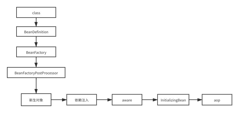 到此为止(class——新生对象——依赖注入——aware——初始化),bean从新建到最后属性都是完善的。但最终存在单例池中当中的对象可能是代理对象而不是原对象,否则做的那些切面都是无意义的。得到一个bean然后调用其方法,它可能是真正那个bean的代理对象其方法比原方法做了扩展。因此在初始化之后还会有一步就是aop判断是否要生成代理对象最终才得到的bean放入单例池