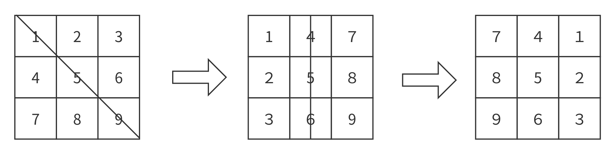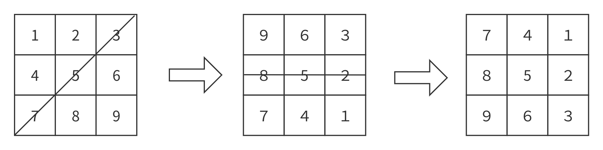 第二种方式就反转和旋转数组一题一样我们直接观察输入图与目标图通过怎样的变换可以得到