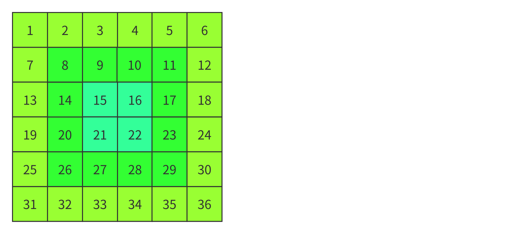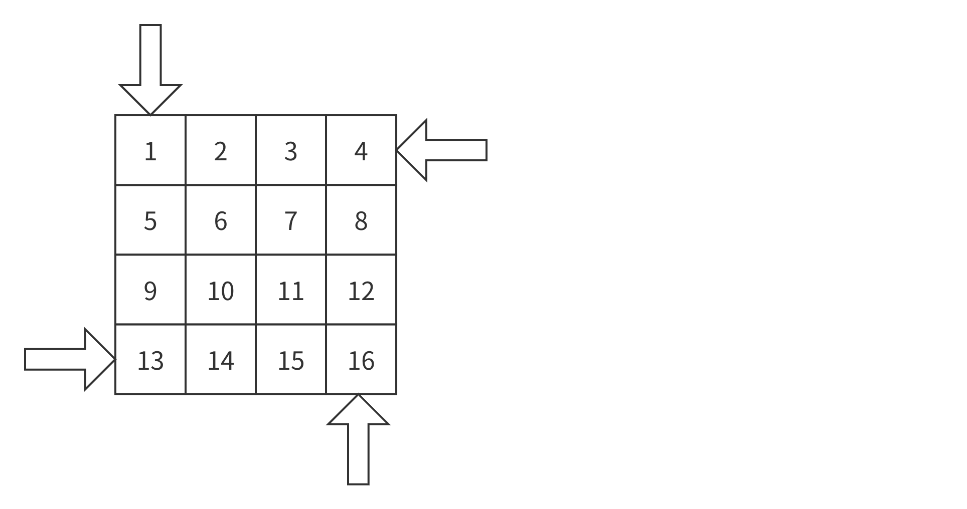 四次设置值是一个单元操作,之后指针变动第一个指针是水平向右移动,第二个指针是垂直向下其他依次,直到头length-1。那么外循环条件是有几圈2×2,3×3都只有一圈,4×4与5×5是两圈。也就是length/2圈,内循环为每圈要移动多少组数字它取决于终点索引,并且每往内一圈length都会少2两边都会靠近1格。