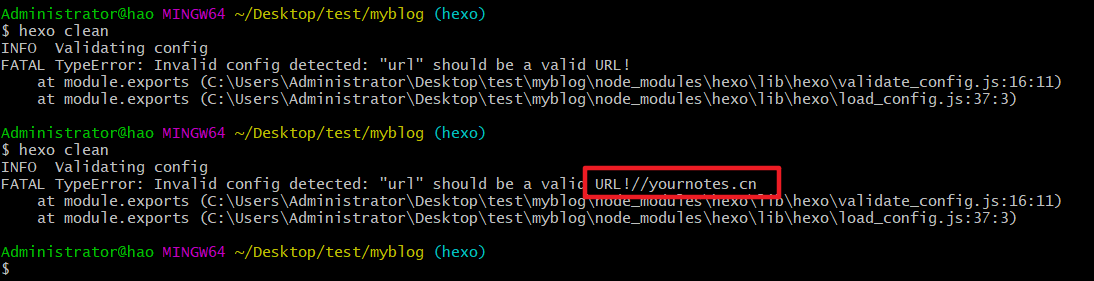 再次启动看错误信息,这不就是在_config.yml中配置的url么
