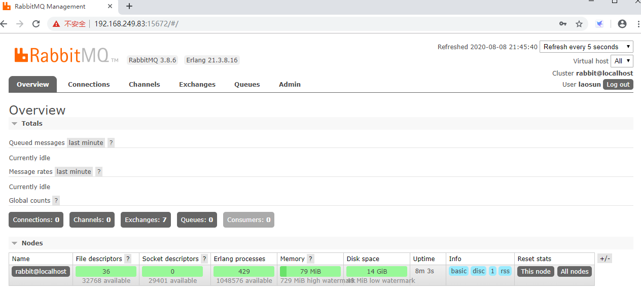 浏览器输入:http://ip:15672