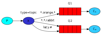 - 一个消息可投入一个或多个队列。
