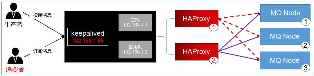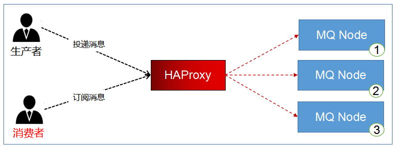 所有的请求都会交给HAProxy,其负载均衡给每个rabbitmq服务器