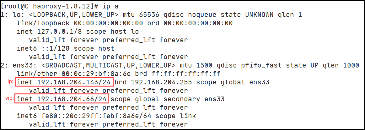 拟ip ip addr或ip a目前,C节点是主机,所以虚拟ip在C节点