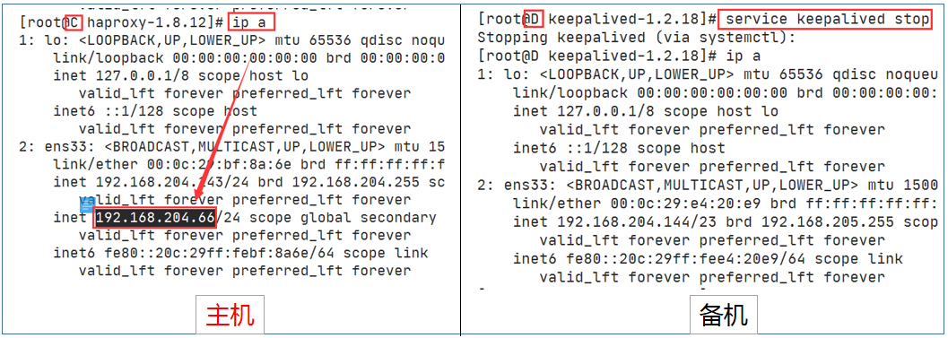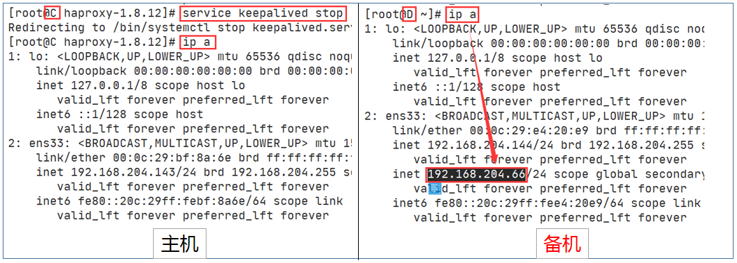 停止D的keepalived,虚拟ip再漂移回C节点