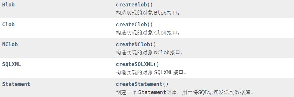 这个接口它明确的指定了要创建的各个产品的方法,MySQL或者Oracle都对其有一套的实现来创建这一套产品家族的具体类的实例。且它们也对产品类也有一套具体的实现。当换成工厂实例是MySQL提供,那么创建的Statement(抽象的产品)就是MySQL的对于这个产品的具体类。而代码中永远使用的是抽象的,工厂只出现Connection这样的接口而没有具体的实现类,而代码中获取的产品Blob、Clob、Statement也是由这些接口接收。