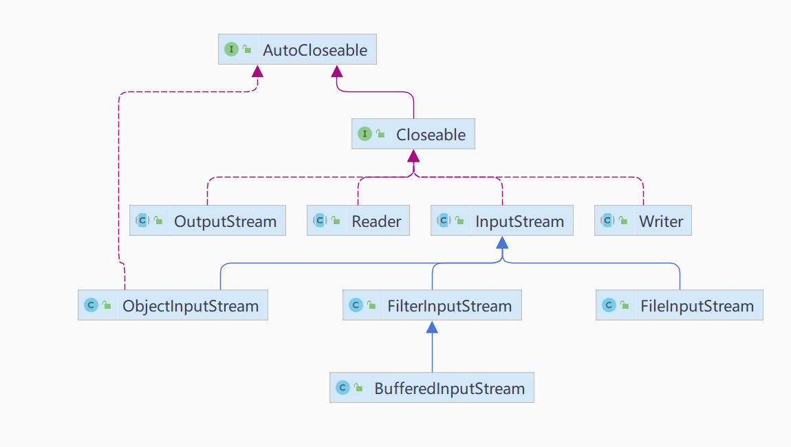 也就是和上面实现一样它们是内嵌了组件类型(InputStream)进去,可以传入各种基础组件。