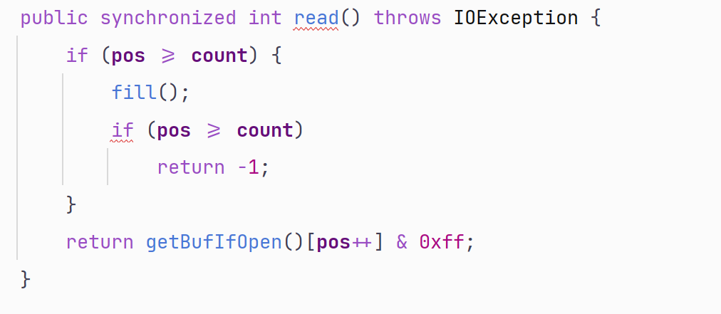 它对原本不具备缓存功能的InputStream提供了缓存读取,实际上就是通过基础组件的read(byte b[], int off, int len)加以实现。